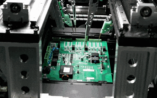 PCBA飛針測試:飛針接觸電路板上的元器件引腳,通過等電位隔離的原理,檢測元器件之間的連接情況,網絡與網絡之間是否短路。 它可以檢測是否存在漏焊、斷路、短路等問題。目前主要測試電阻、電容器件。